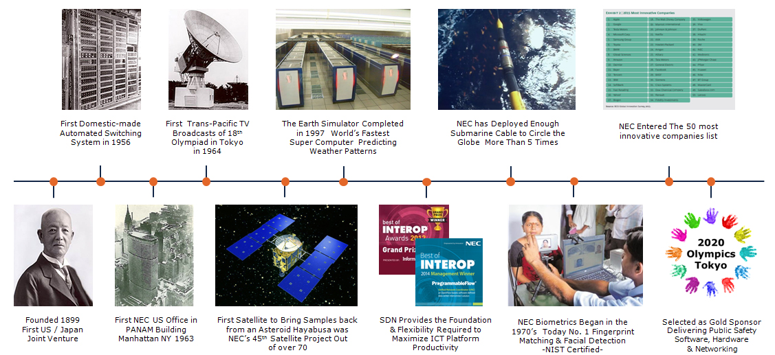 Основываясь на комментариях 1500 топ-менеджеров различных компаний, а также благодаря нашим постоянным инвестициям в научно-исследовательскую деятельность и разработки, Boston Consulting Group признала NEC лидирующим мировым инноватором и включила NEC в десятый ежегодный список Топ-50 инновационных компаний мира 2015 года.